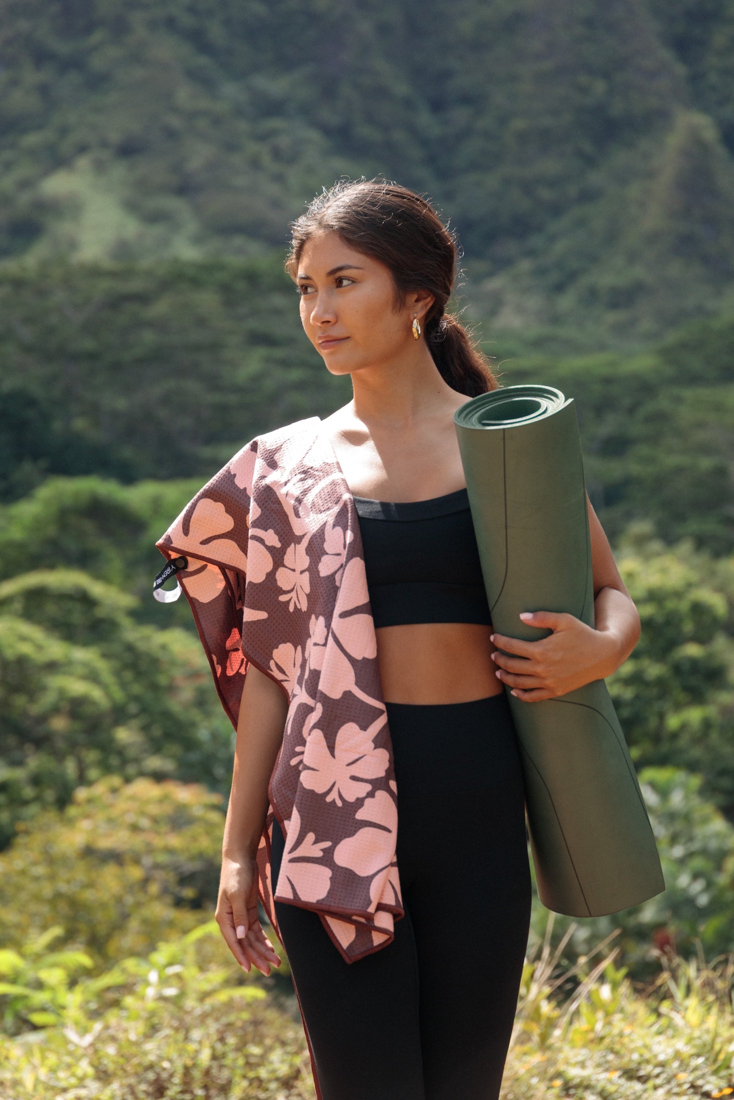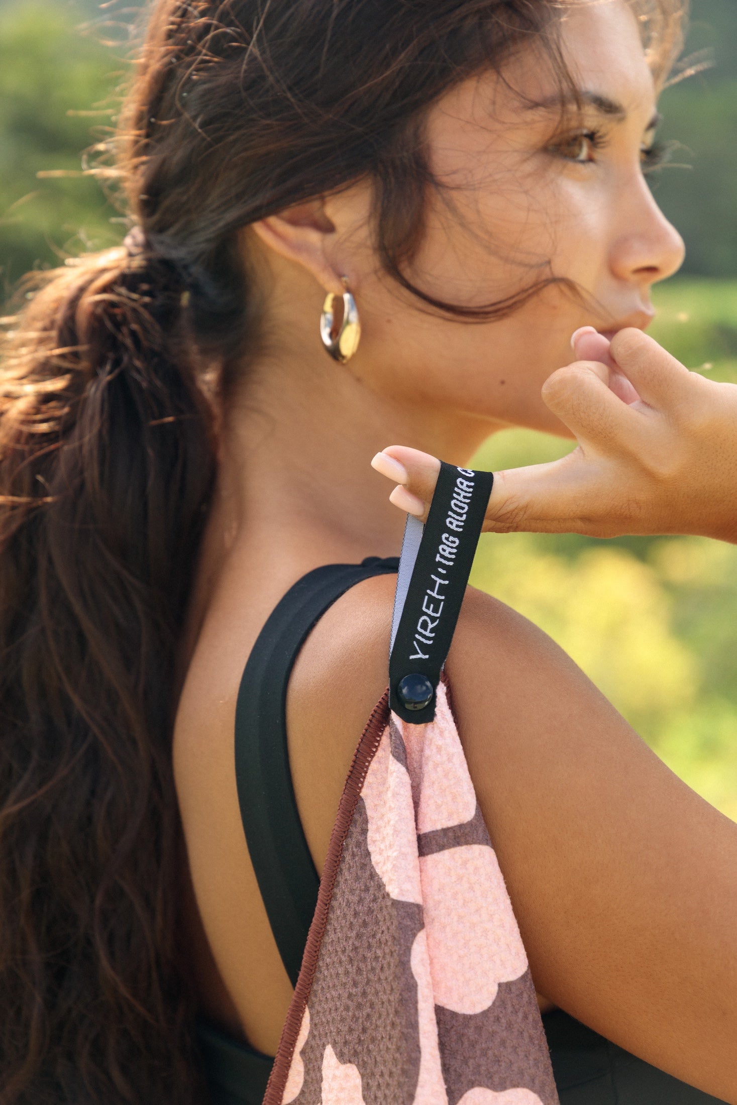Use your YIREH x Tag Aloha towel at the beach or at yoga! Tag Aloha towels are made from a recycled PET. For every towel made, the equivalent of 12 water bottles are removed from a landfill! They are super absorbent, very quick drying, and have a luxurious waffle weave (so you won't slip if you choose this towel as your hot yoga companion).