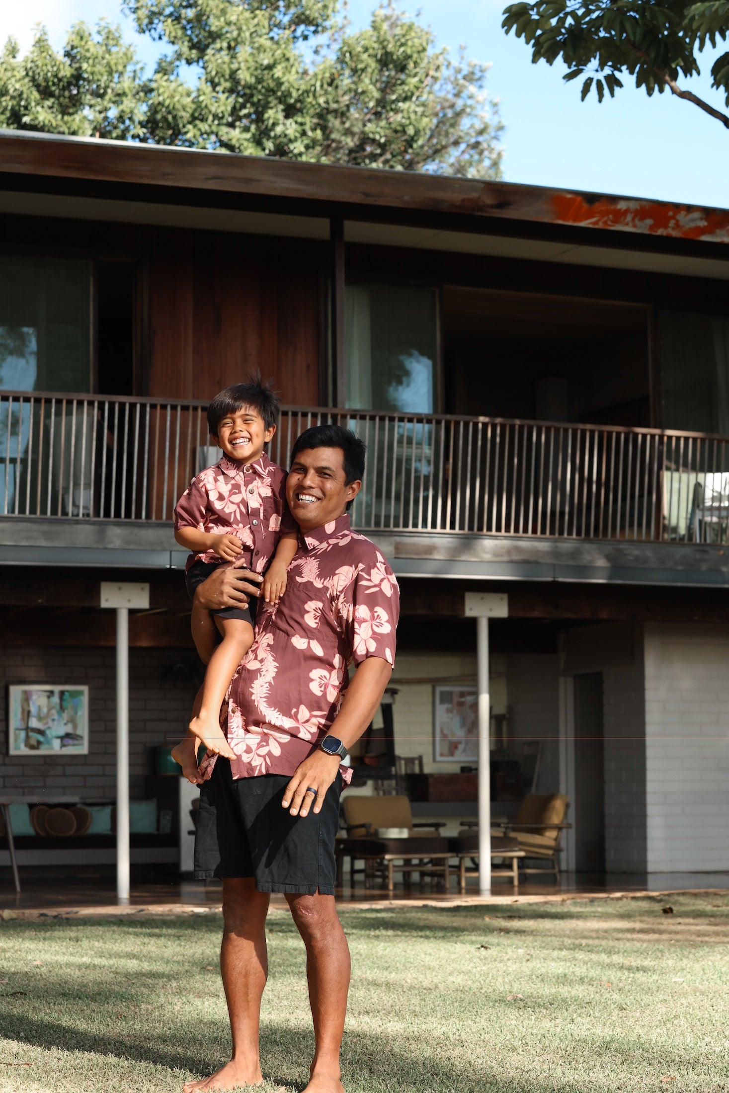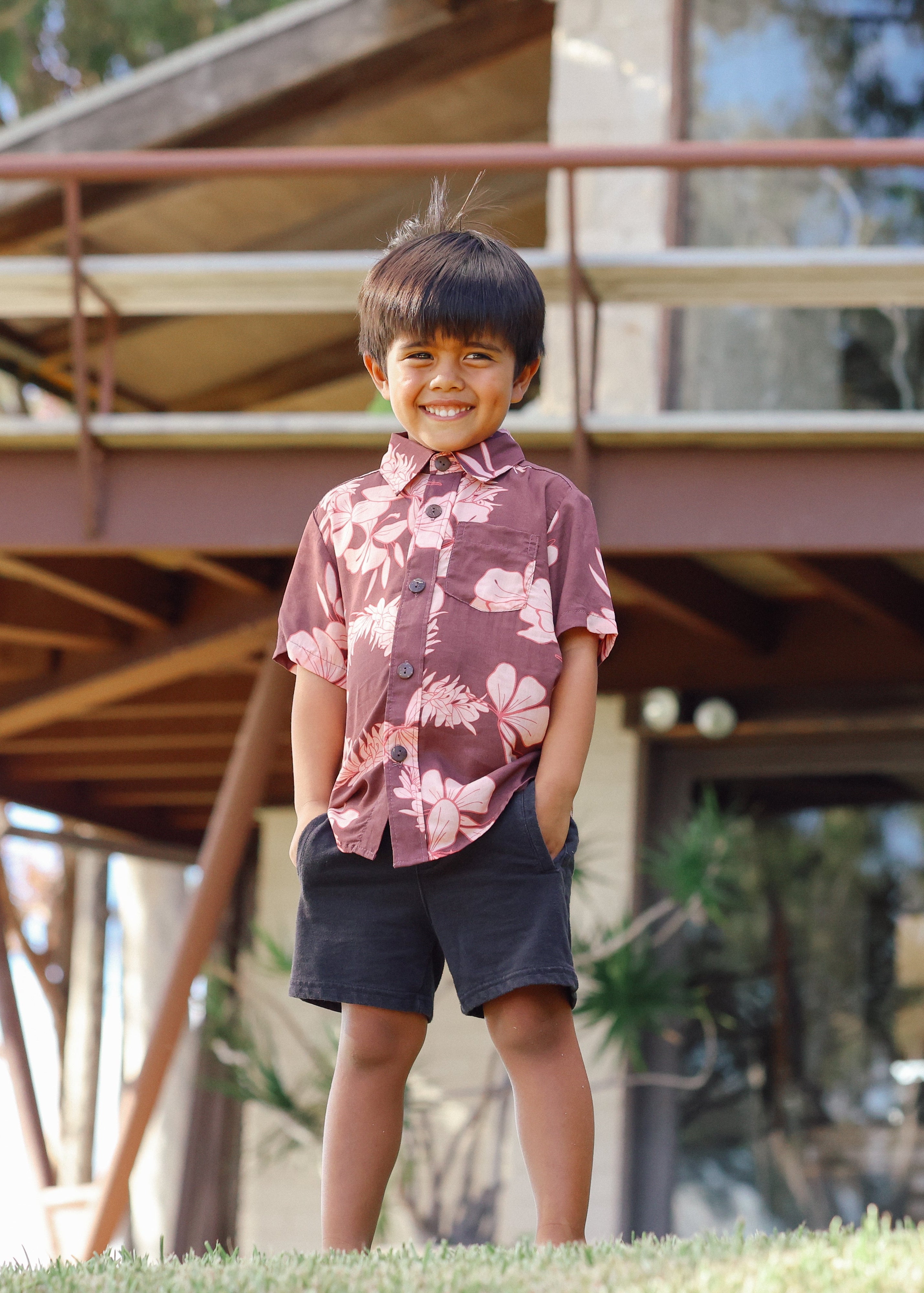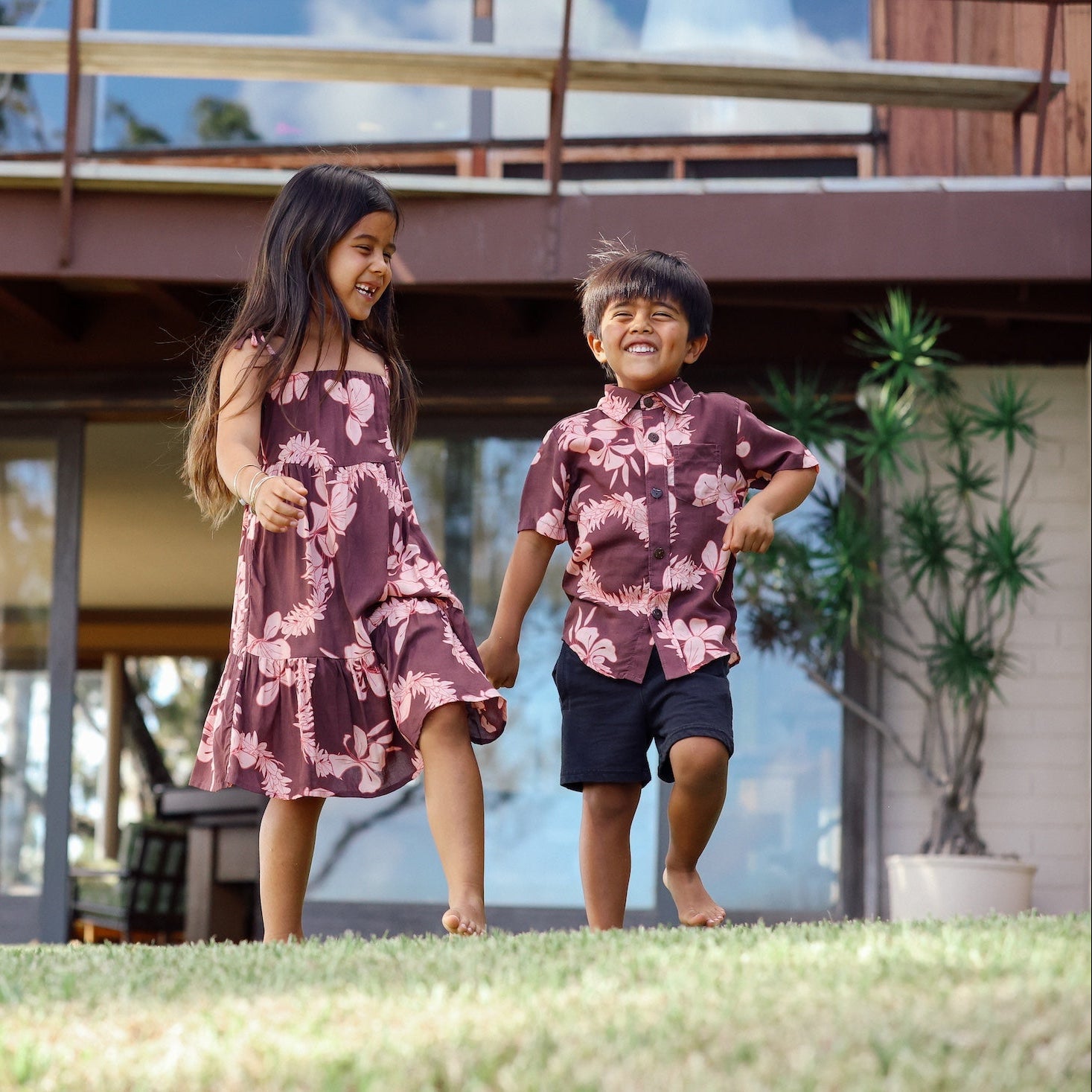 The Maverick Button-Up is a playful mini version of our Men's Kahana Button-Up, designed just for your keiki. Featuring a classic collar, a chest pocket, coconut buttons, and vibrant floral patterns, the Maverick Button-Up is the perfect mini aloha shirt. Ethically made in Bali, Indonesia