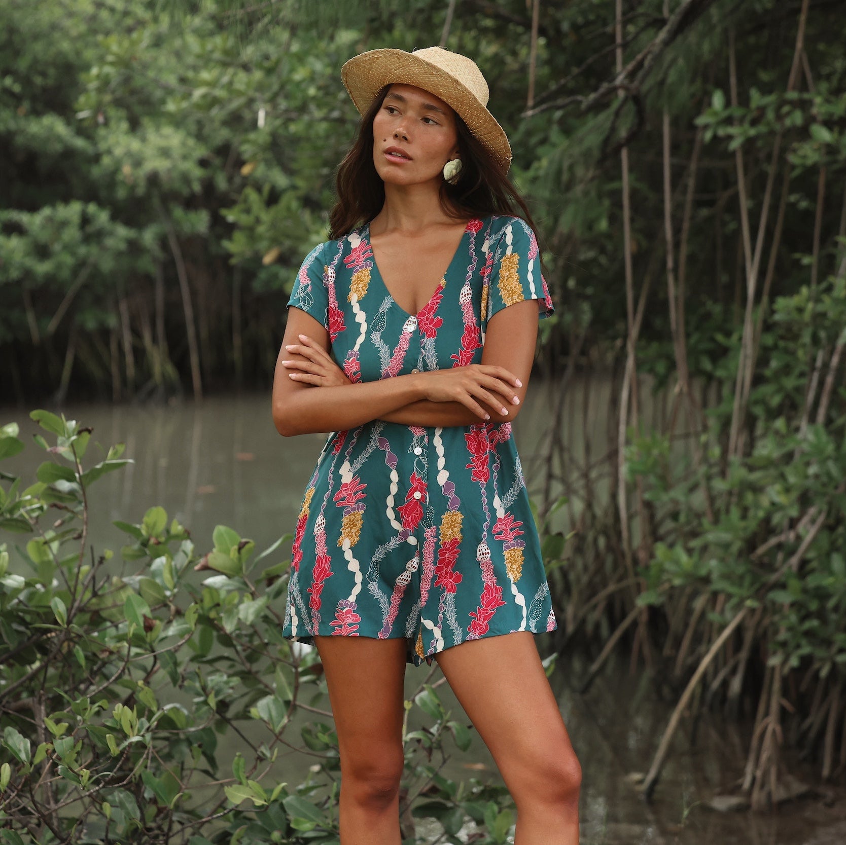 Our exclusive and one-of-a-kind prints are inspired by a mix of our island home in Hawai'i and the places we've traveled. We work with artists to design our prints and then our fabrics are made to order especially for us. We print our fabrics in eco-friendly techniques that use little to no water and non-toxic dyes. Our scrap fabrics are either donated to micro-businesses around the factories we partner with or repurposed to create our scarves and sarongs. Our goal is to leave behind as little as possible and give you peace of mind with every purchase.