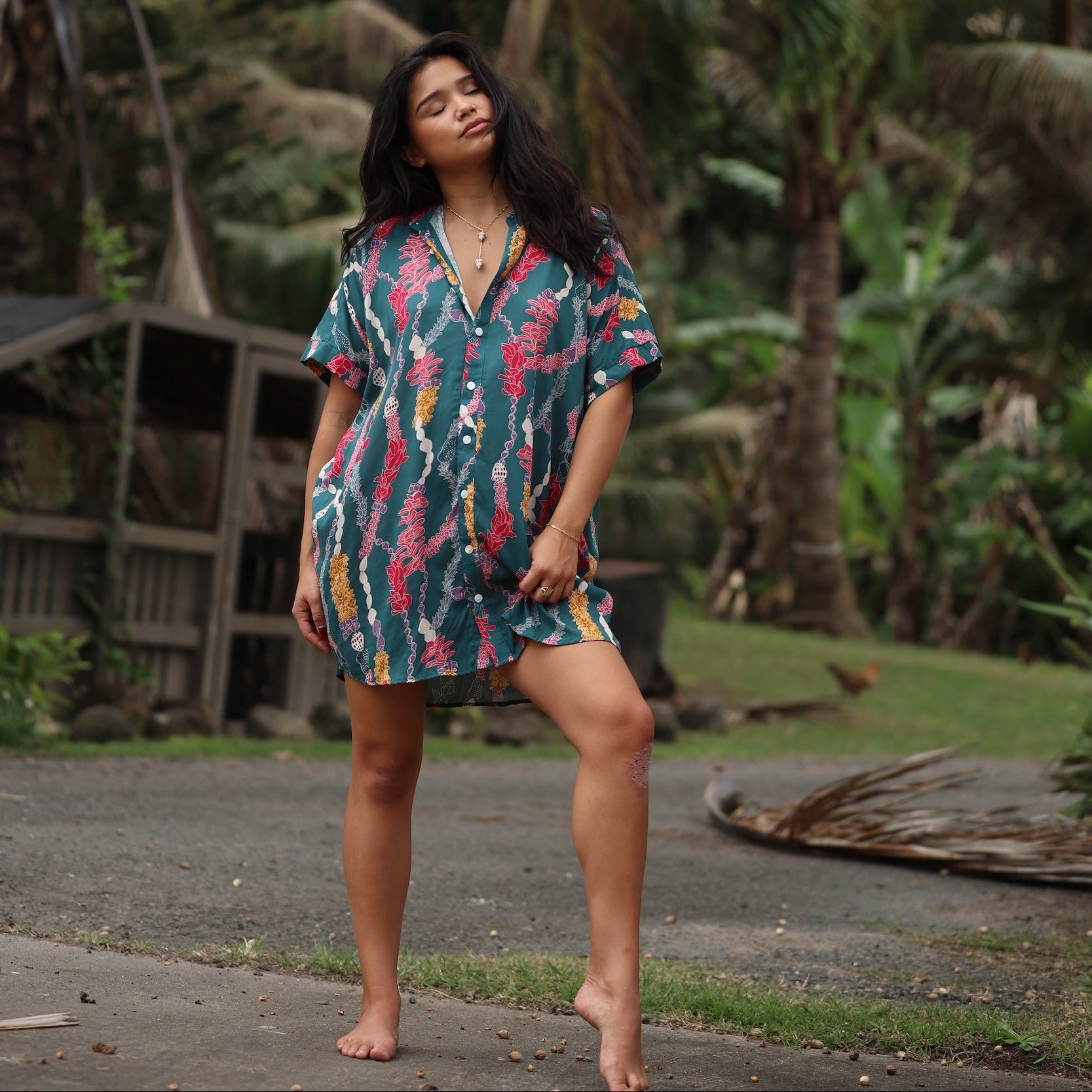 Our exclusive and one-of-a-kind prints are inspired by a mix of our island home in Hawai'i and the places we've traveled. We work with artists to design our prints and then our fabrics are made to order especially for us. We print our fabrics in eco-friendly techniques that use little to no water and non-toxic dyes. Our scrap fabrics are either donated to micro-businesses around the factories we partner with or repurposed to create our scarves and sarongs. Our goal is to leave behind as little as possible and give you peace of mind with every purchase.
