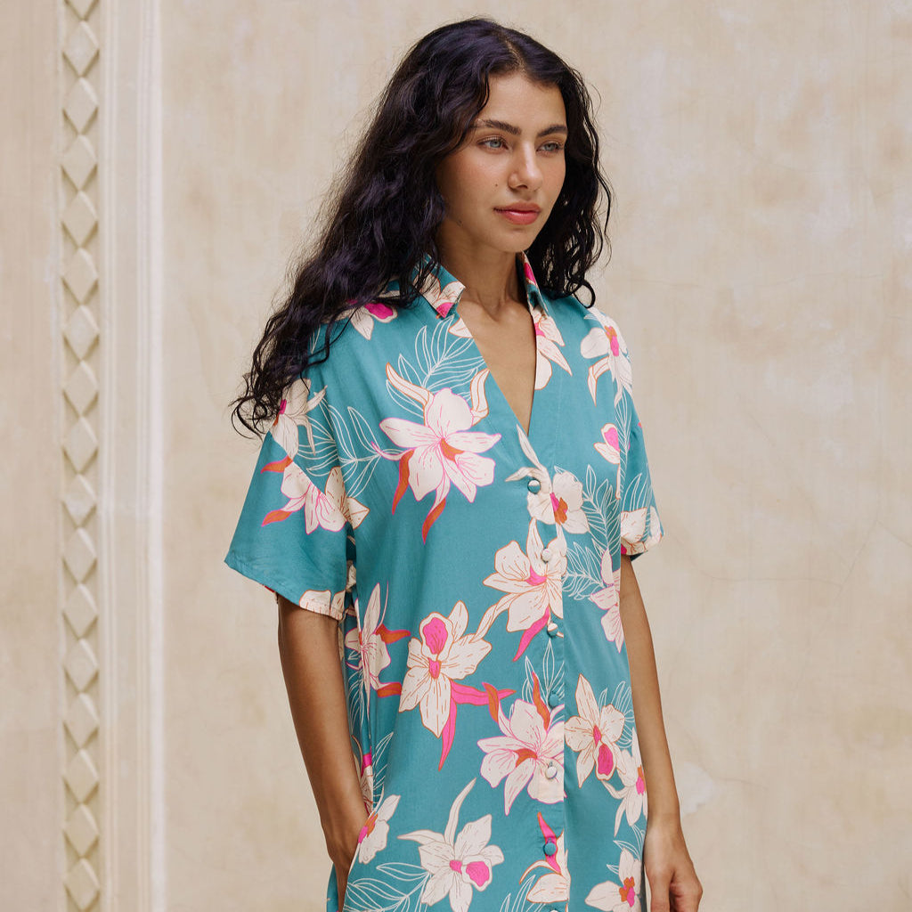 Our exclusive and one-of-a-kind prints are inspired by a mix of our island home in Hawai'i and the places we've traveled. We work with artists to design our prints and then our fabrics are made to order especially for us. We print our fabrics in eco-friendly techniques that use little to no water and non-toxic dyes. Our scrap fabrics are either donated to micro-businesses around the factories we partner with or repurposed to create our scarves and sarongs. Our goal is to leave behind as little as possible and give you peace of mind with every purchase.