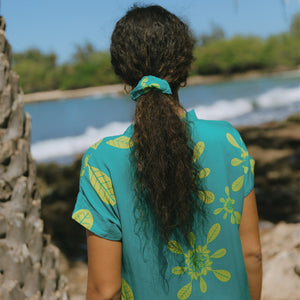 Our exclusive and one-of-a-kind prints are inspired by a mix of our island home in Hawai'i and the places we've traveled. We work with artists to design our prints and then our fabrics are made to order especially for us. We print our fabrics in eco-friendly techniques that use little to no water and non-toxic dyes. Our scrap fabrics are either donated to micro-businesses around the factories we partner with or repurposed to create our scarves and sarongs. Our goal is to leave behind as little as possible and give you peace of mind with every purchase.
