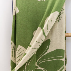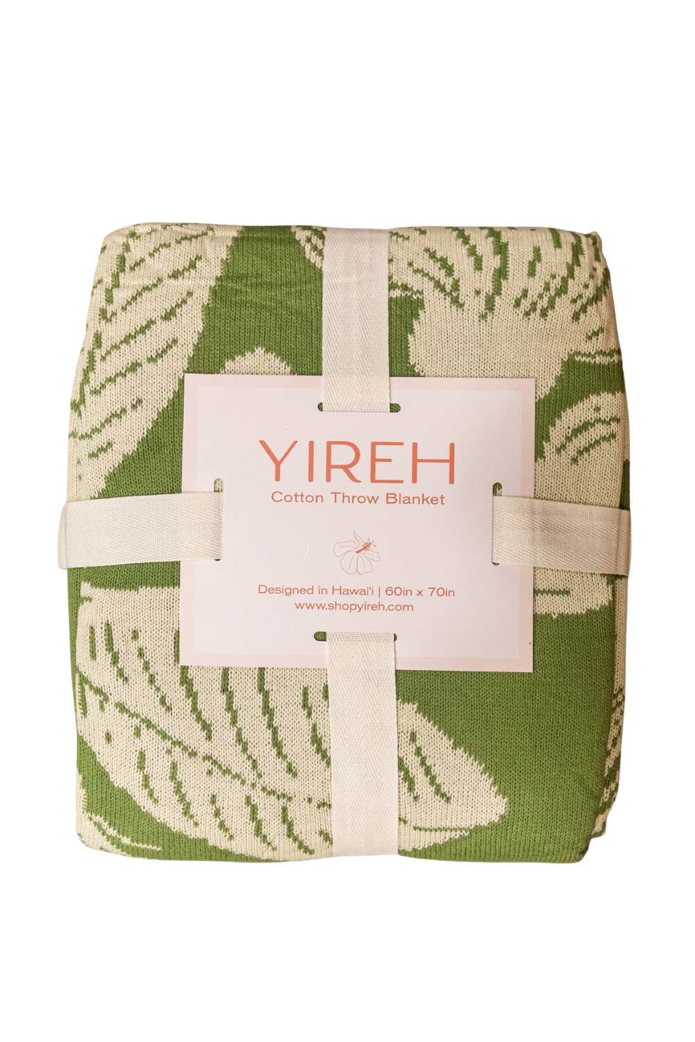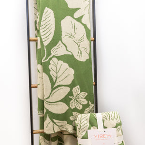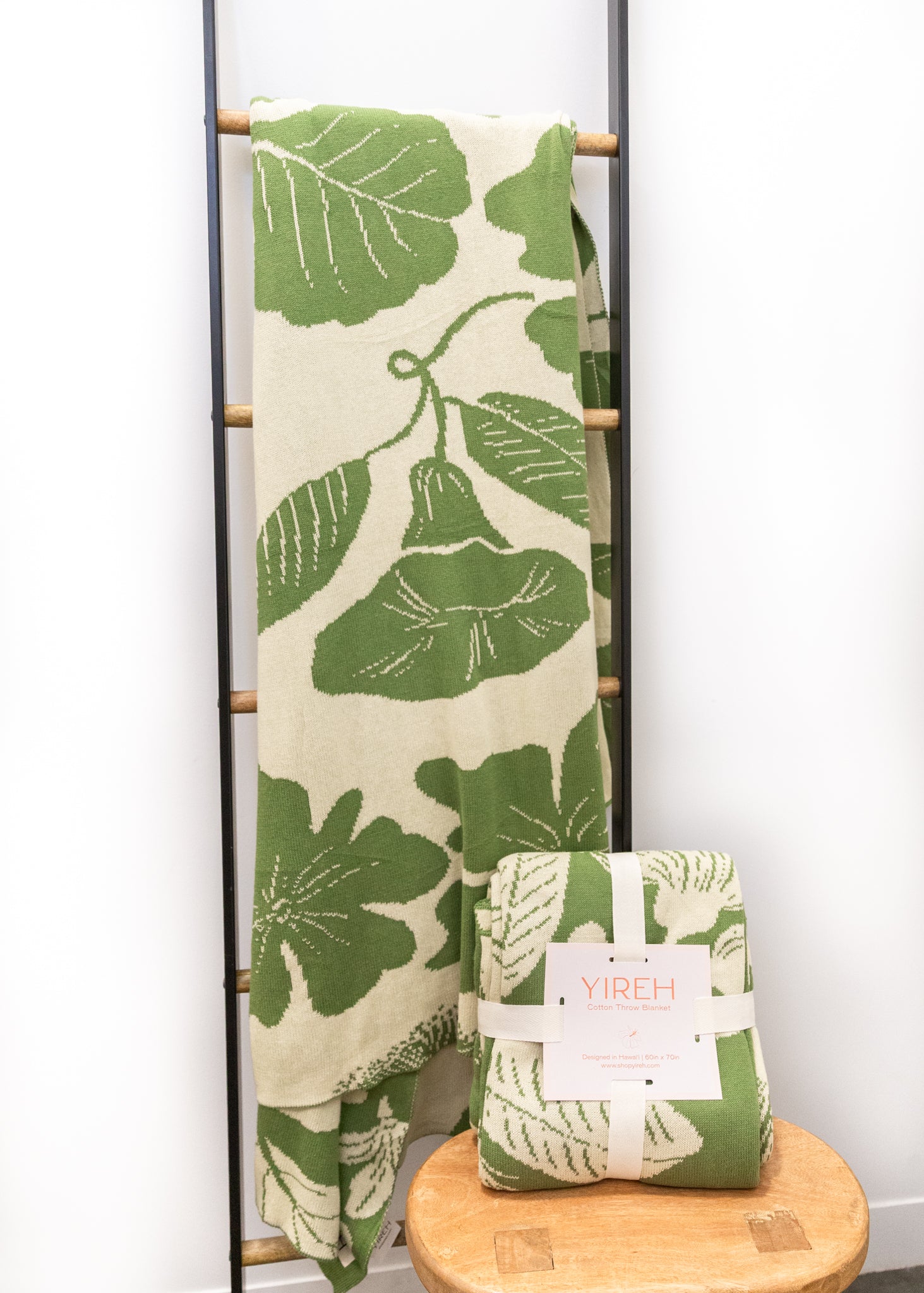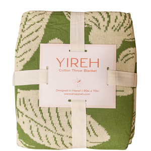 The Woven Cotton Blanket is a versatile and comfy essential for life on the go. Whether you're lounging at home, relaxing at the beach, traveling, or styling it as home decor, it’s designed to keep you cozy wherever you are with a touch of local flair. This blanket is reversible, one side has a green background and the opposite side is cream. It’s soft, breathable, and perfect for year-round comfort. Blankets are approximately 5 feet x 6 feet.