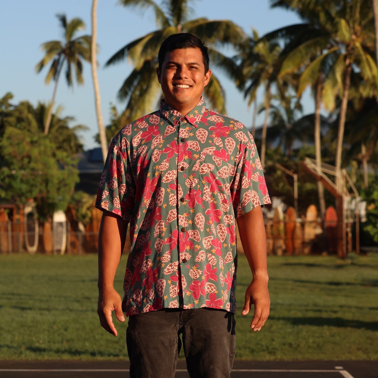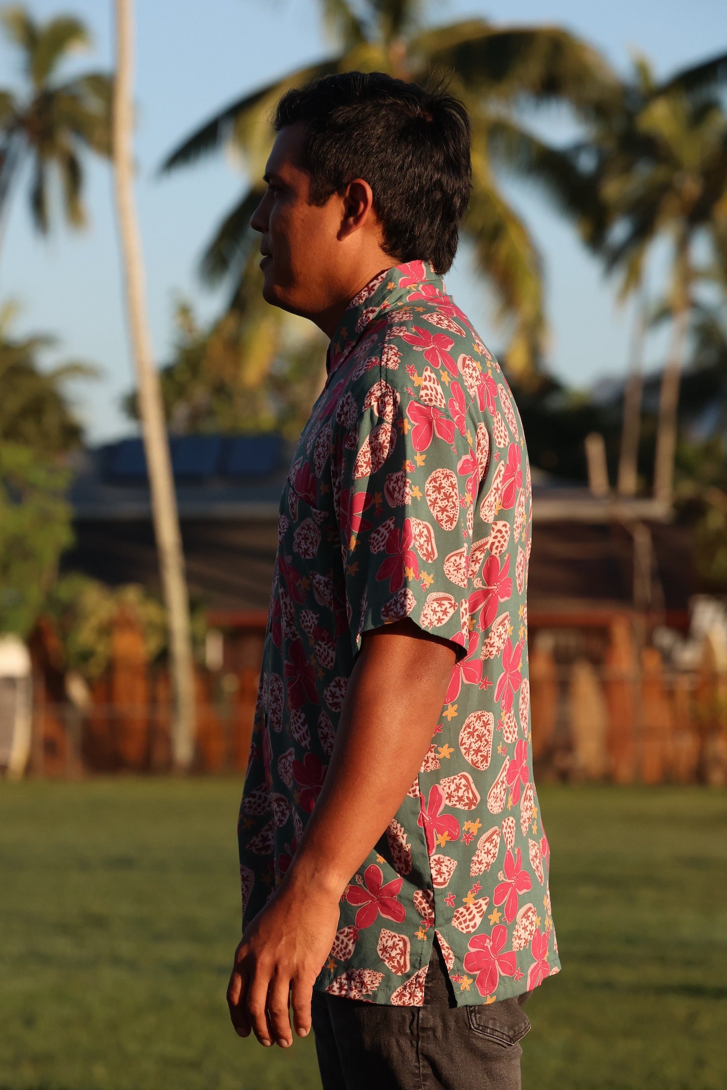 Men's Kahana Button-Up in Shells & Pua (Teal)