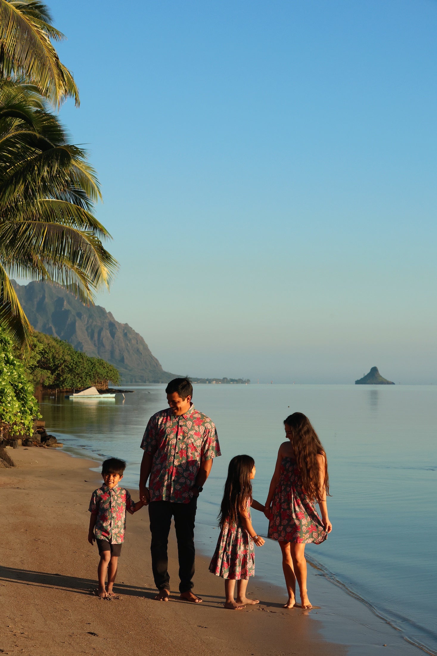 Our exclusive and one-of-a-kind prints are inspired by a mix of our island home in Hawai'i and the places we've traveled. We work with artists to design our prints and then our fabrics are made to order especially for us. We print our fabrics in eco-friendly techniques that use little to no water and non-toxic dyes. Our scrap fabrics are either donated to micro-businesses around the factories we partner with or repurposed to create our scarves and sarongs. Our goal is to leave behind as little as possible and give you peace of mind with every purchase.