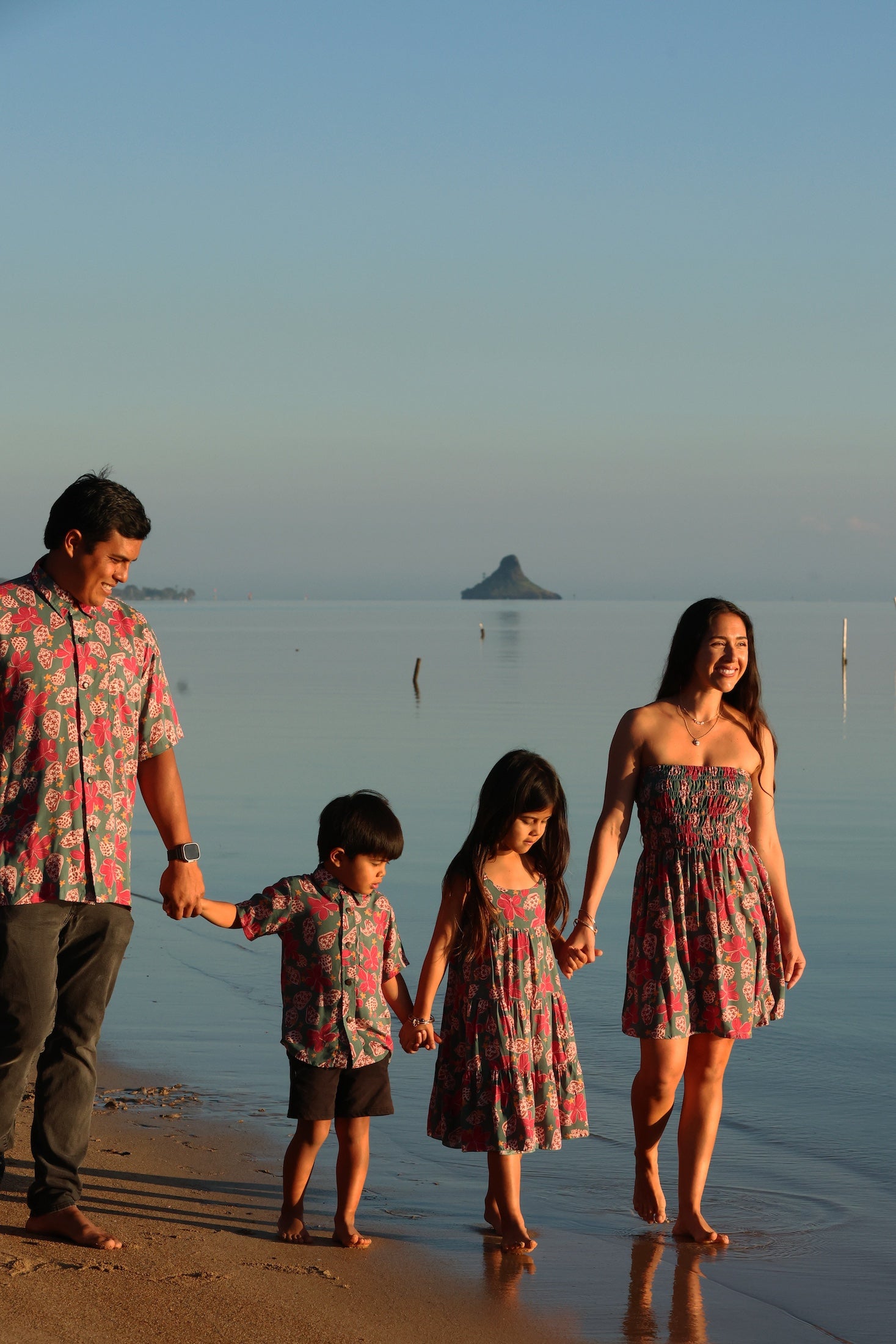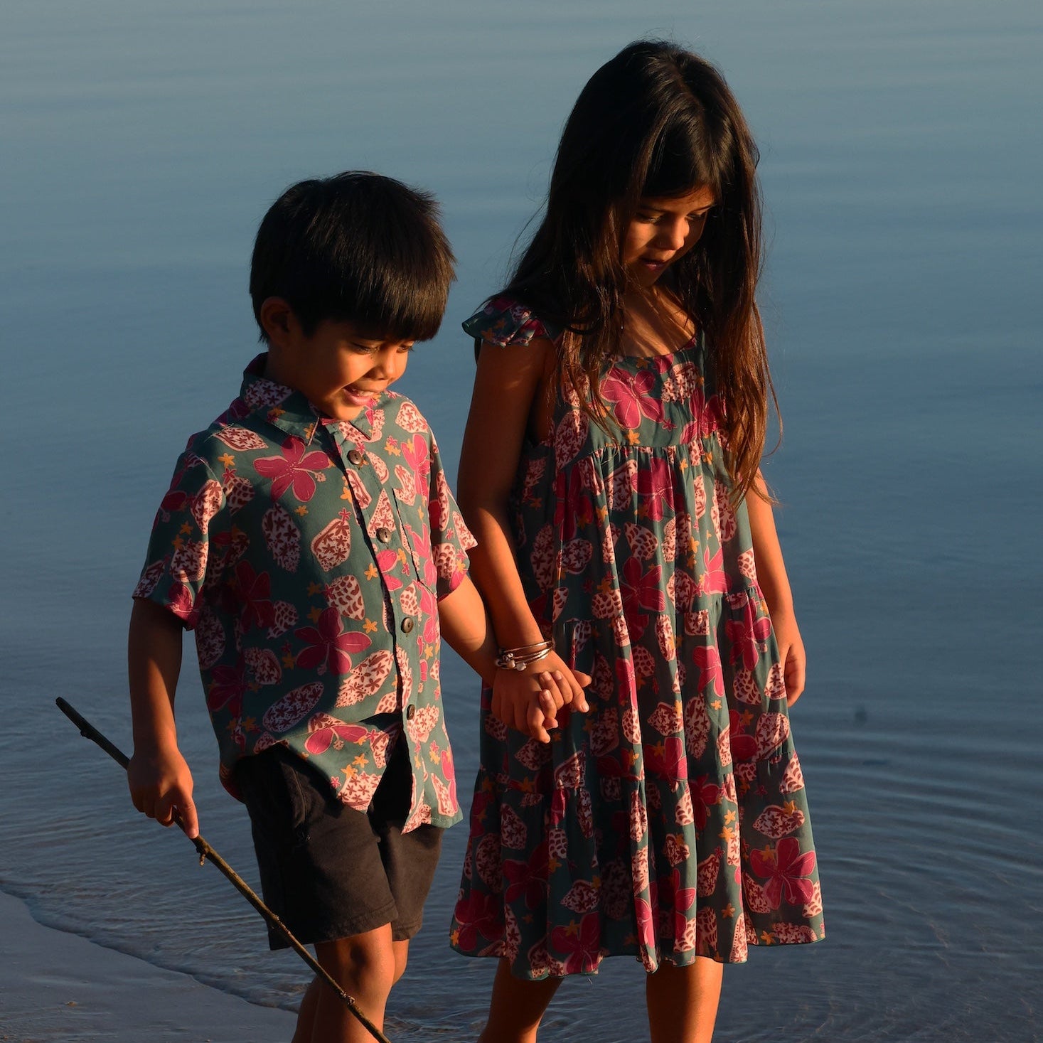 Our exclusive and one-of-a-kind prints are inspired by a mix of our island home in Hawai'i and the places we've traveled. We work with artists to design our prints and then our fabrics are made to order especially for us. We print our fabrics in eco-friendly techniques that use little to no water and non-toxic dyes. Our scrap fabrics are either donated to micro-businesses around the factories we partner with or repurposed to create our scarves and sarongs. Our goal is to leave behind as little as possible and give you peace of mind with every purchase.