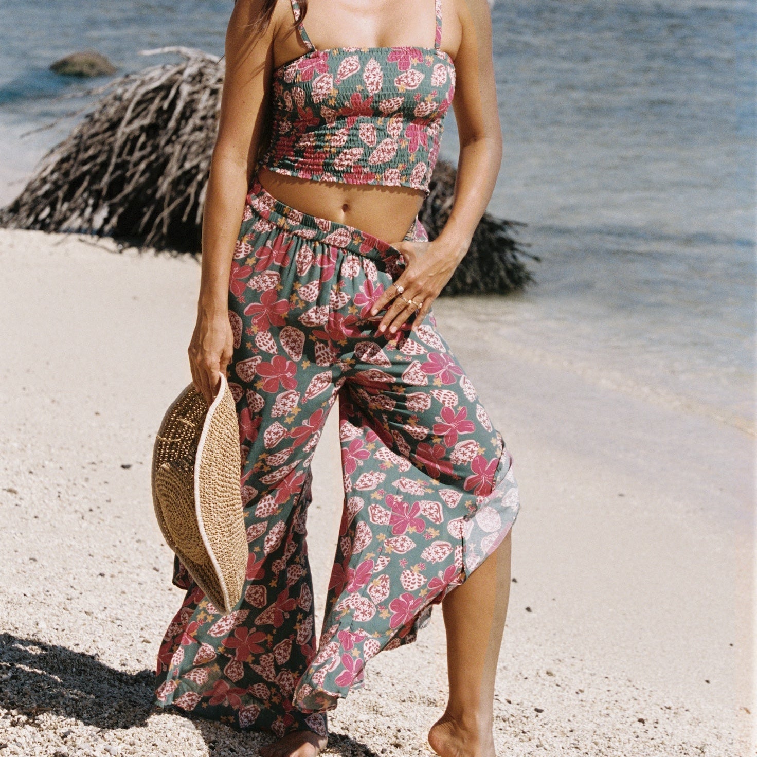 The Sumi Pant is breezy, flowy and undeniably comfortable. Designed with an elastic waistband and fun ruffle openings on each leg, it moves effortlessly with you. The Sumi Pant will keep you feeling free and cute all day long. Ethically made in Bali, Indonesia.