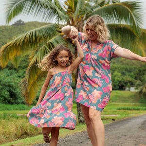 Our exclusive and one-of-a-kind prints are inspired by a mix of our island home in Hawai'i and the places we've traveled. We work with artists to design our prints and then our fabrics are made to order especially for us. We print our fabrics in eco-friendly techniques that use little to no water and non-toxic dyes. Our scrap fabrics are either donated to micro-businesses around the factories we partner with or repurposed to create our scarves and sarongs. Our goal is to leave behind as little as possible and give you peace of mind with every purchase.