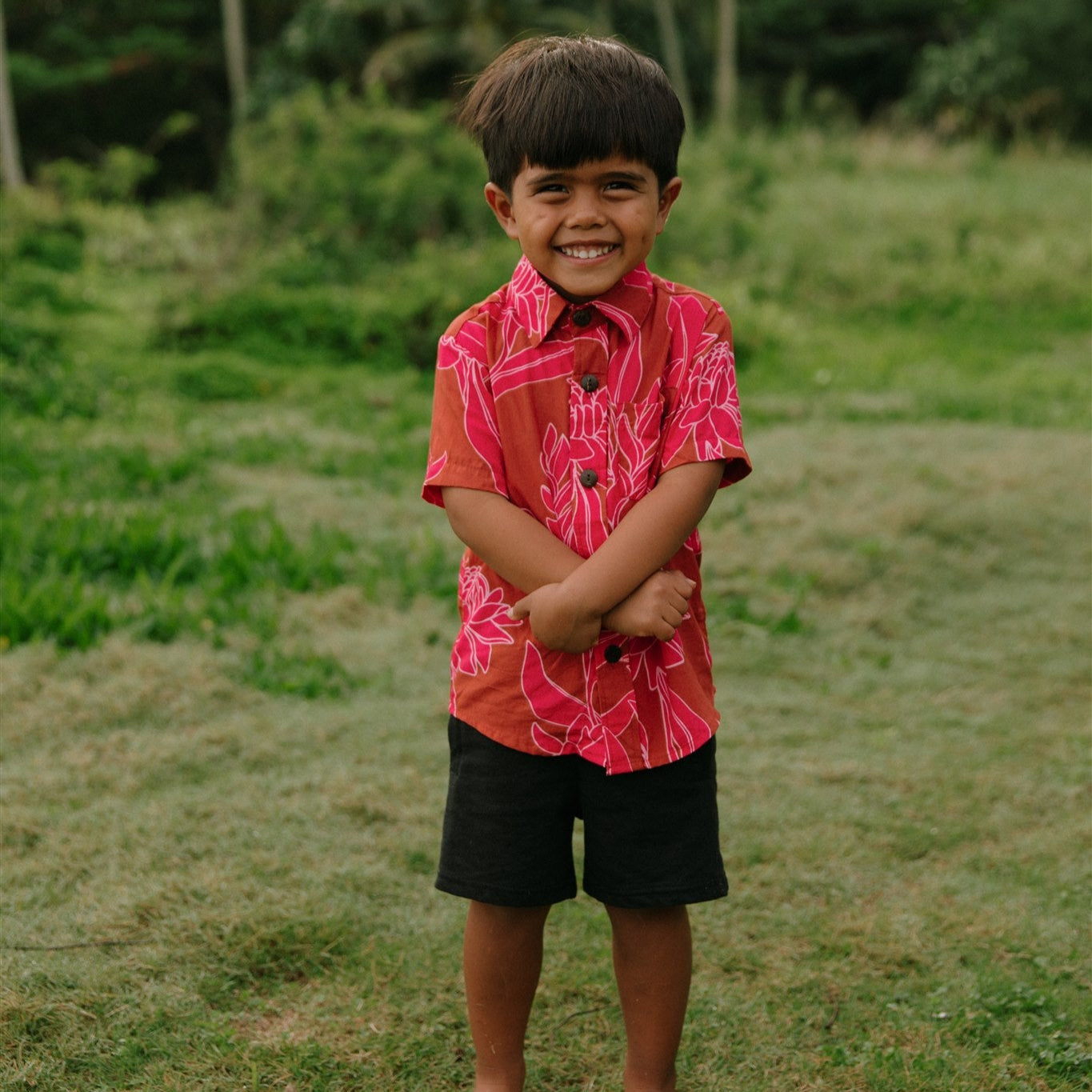 The Maverick Button-Up is a playful mini version of our Men's Kahana Button-Up, designed just for your keiki. Featuring a classic collar, a chest pocket, coconut buttons, and vibrant floral patterns, the Maverick Button-Up is the perfect mini aloha shirt. Ethically made in Bali, Indonesia