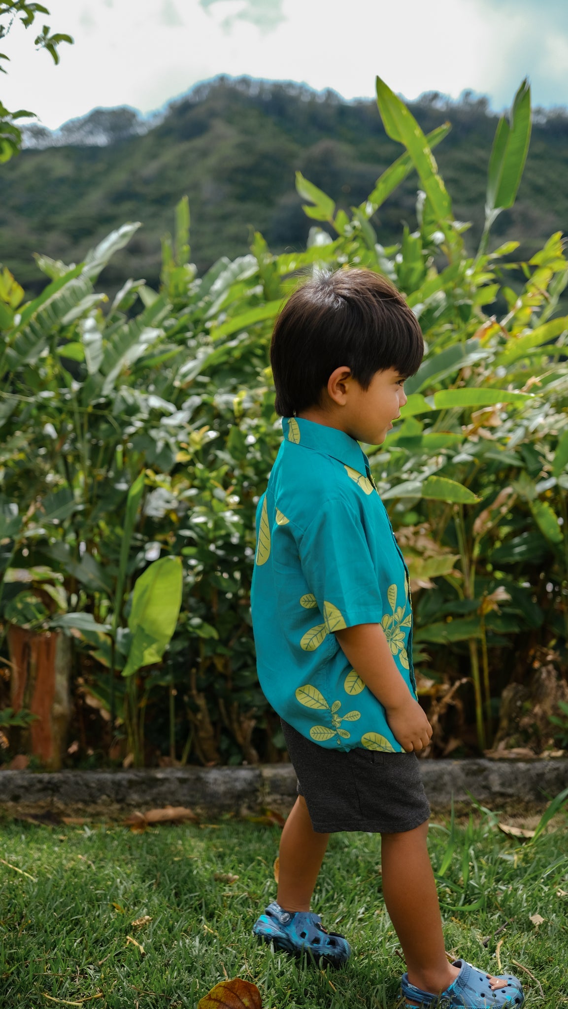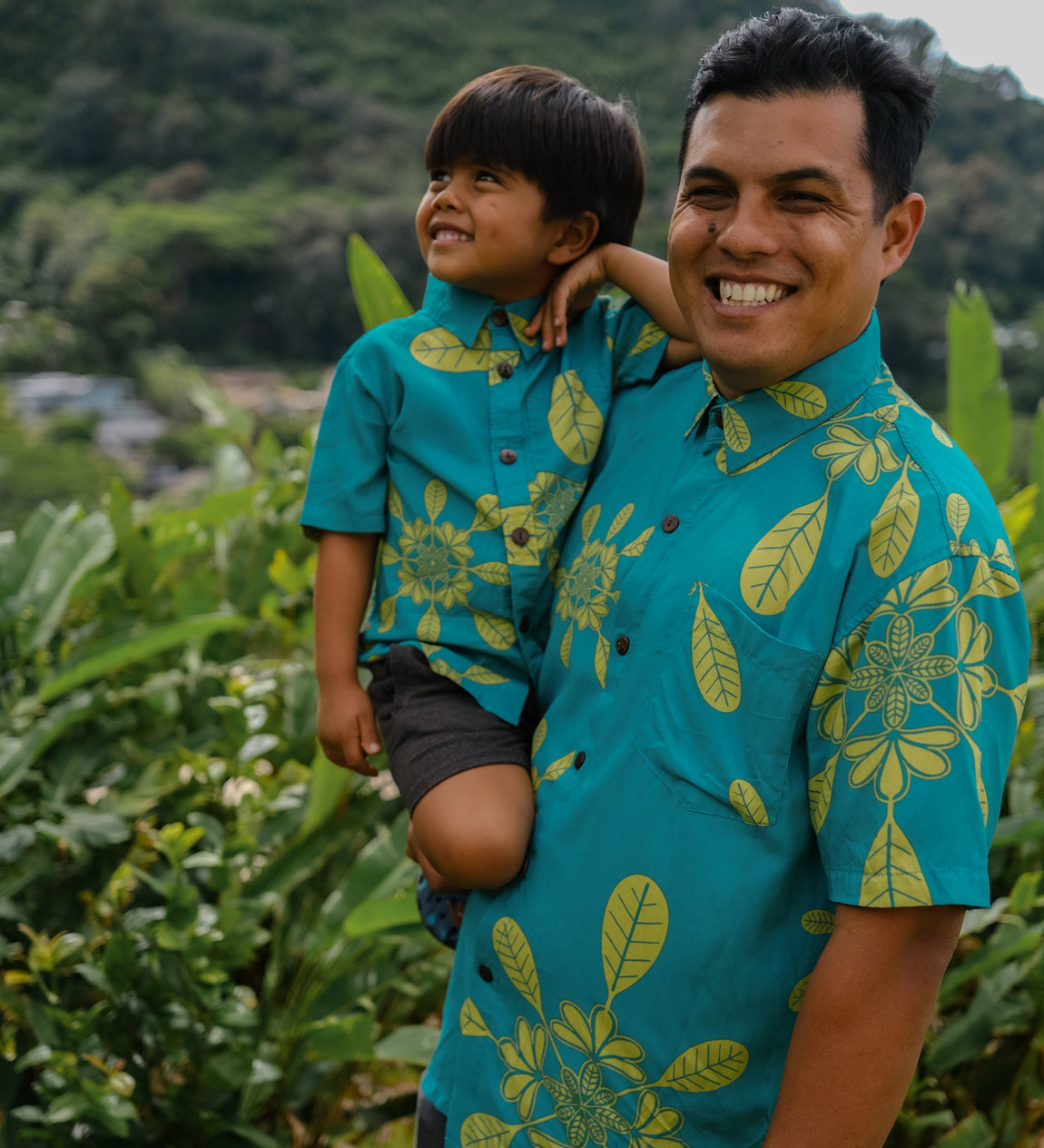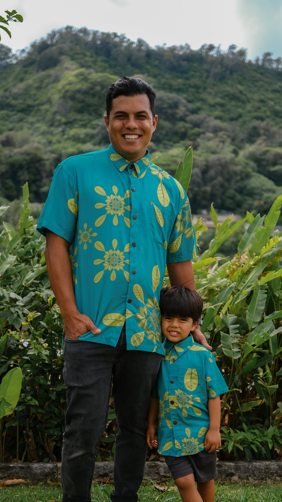 The Maverick Button-Up is a playful mini version of our Men's Kahana Button-Up, designed just for your keiki. Featuring a classic collar, a chest pocket, coconut buttons, and vibrant floral patterns, the Maverick Button-Up is the perfect mini aloha shirt. Ethically made in Bali, Indonesia