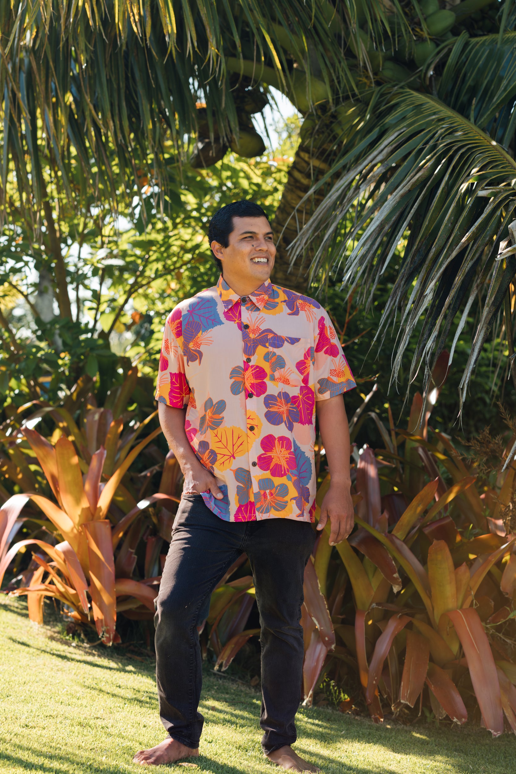 The Men's Kahana Button-Up is a classic and timeless aloha shirt. Designed with a relaxed fit featuring coconut buttons and a stylish chest pocket, the Kahana Button-Up is a comfortable basic made for any occasion. Ethically made in Bali, Indonesia.
