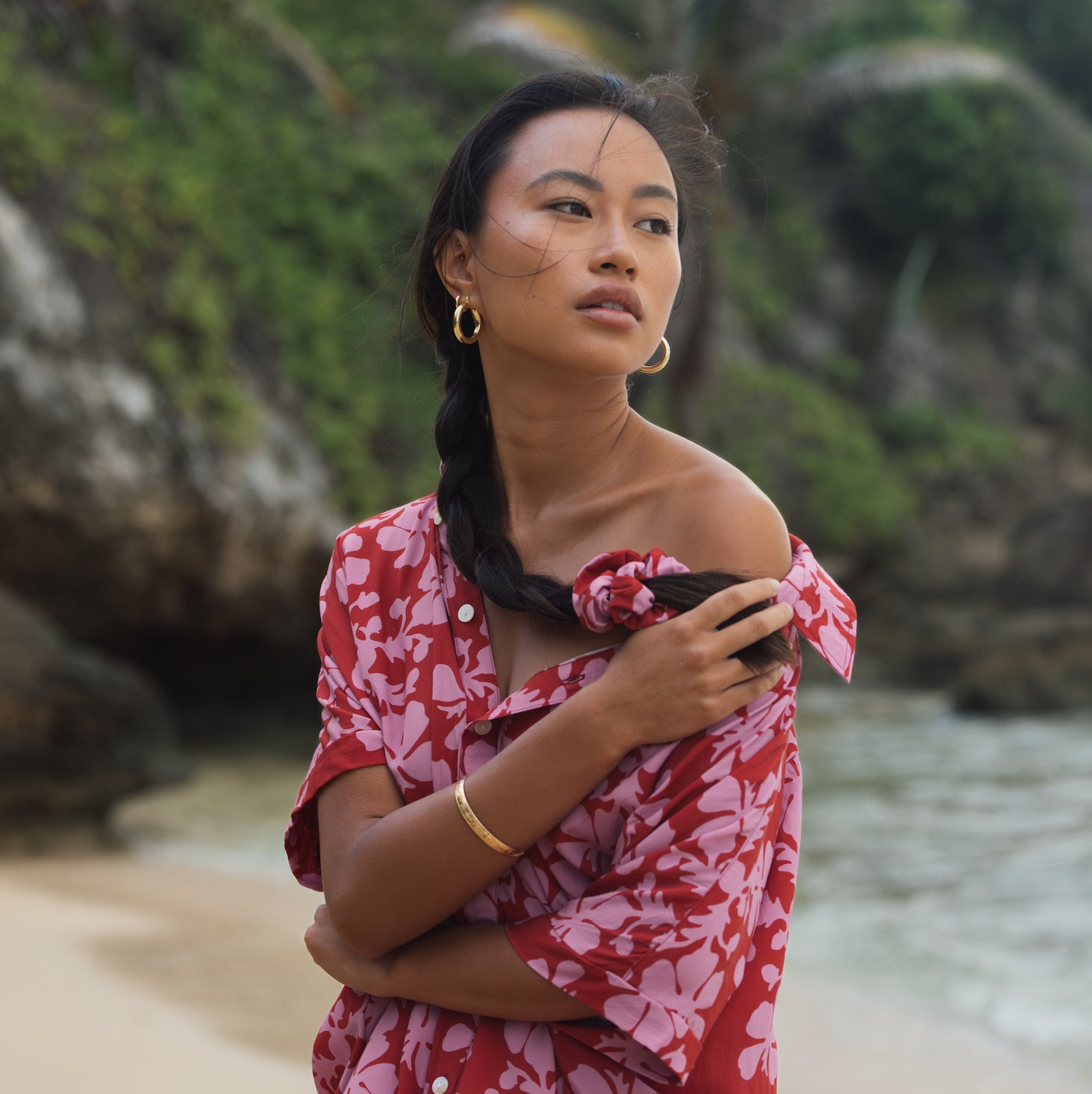 Our exclusive and one-of-a-kind prints are inspired by a mix of our island home in Hawai'i and the places we've traveled. We work with artists to design our prints and then our fabrics are made to order especially for us. We print our fabrics in eco-friendly techniques that use little to no water and non-toxic dyes. Our scrap fabrics are either donated to micro-businesses around the factories we partner with or repurposed to create our scarves and sarongs. Our goal is to leave behind as little as possible and give you peace of mind with every purchase.