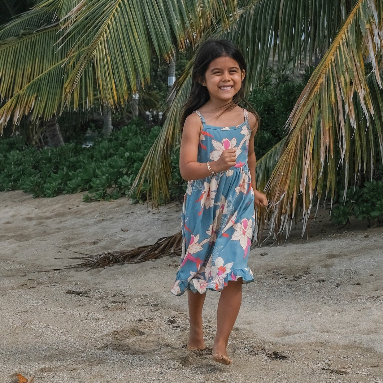 The Hili Dress is playful, versatile, and effortlessly summery. Designed with adjustable straps, dainty tie back detail, and a delicate ruffled hem, the Hili Dress is made for full days playing in the sunshine. Ethically made in Bali, Indonesia.