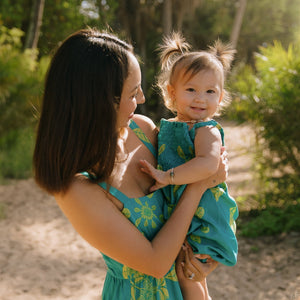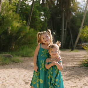 Our exclusive and one-of-a-kind prints are inspired by a mix of our island home in Hawai'i and the places we've traveled. We work with artists to design our prints and then our fabrics are made to order especially for us. We print our fabrics in eco-friendly techniques that use little to no water and non-toxic dyes. Our scrap fabrics are either donated to micro-businesses around the factories we partner with or repurposed to create our scarves and sarongs. Our goal is to leave behind as little as possible and give you peace of mind with every purchase.