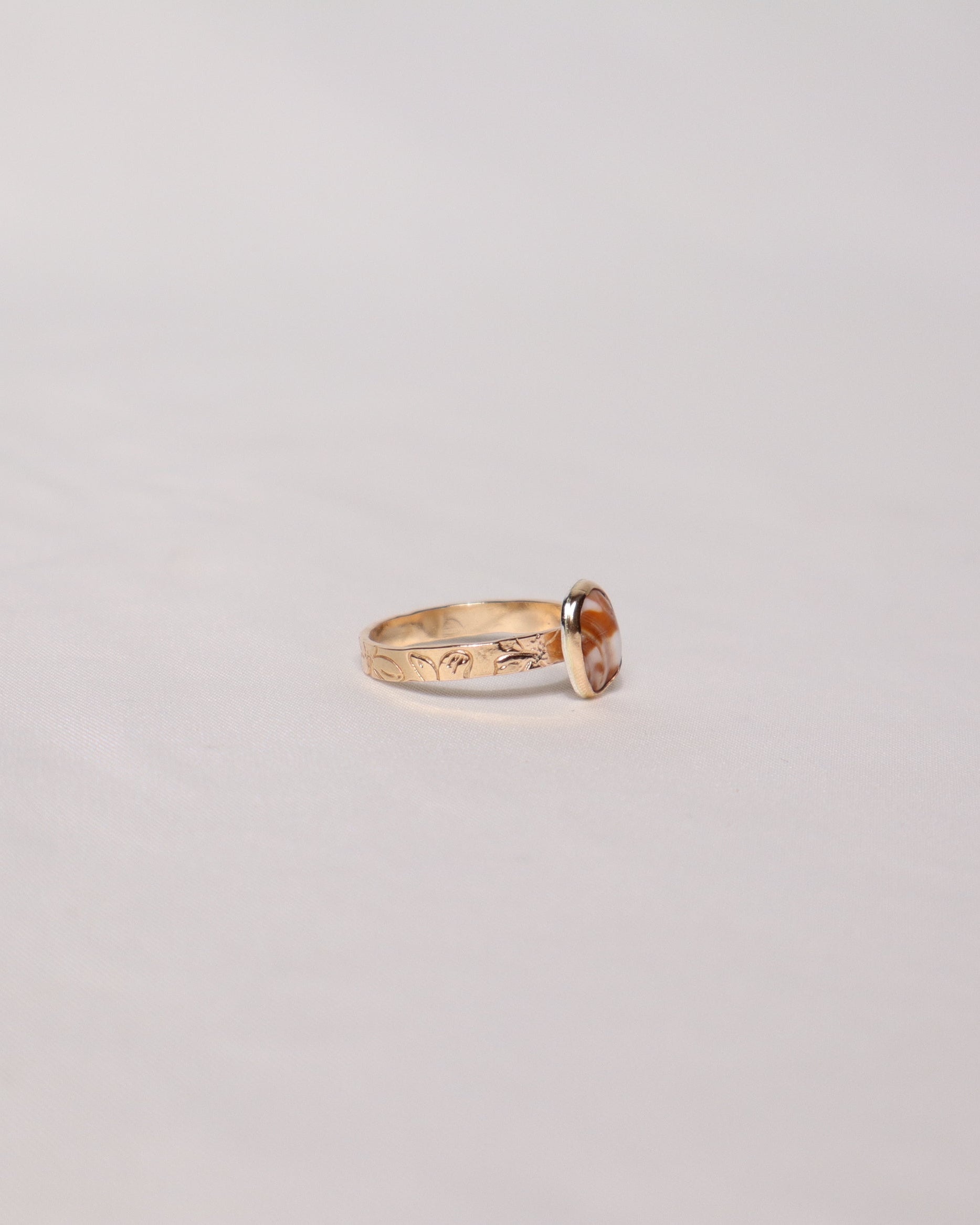 This jewelry collection is a throwback to YIREH's earliest days and very first products of homemade sunrise shell jewelry. These pieces are custom-made for YIREH. The ring features a bezeled shell chip with hand-stamped hibiscus flower from our Shells & Pua print. Each ring is unique and will not be restocked.
