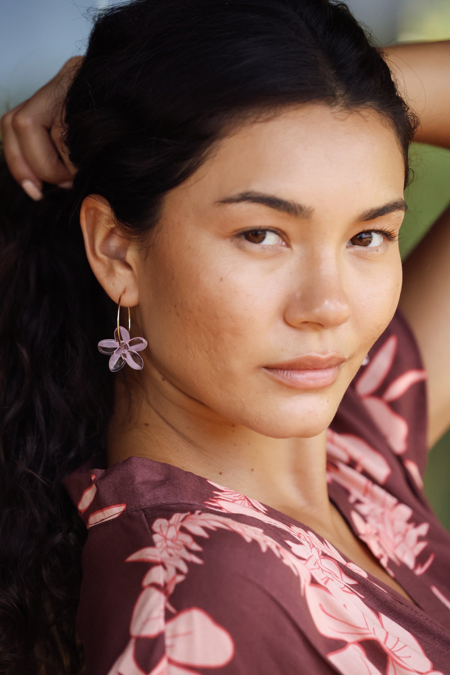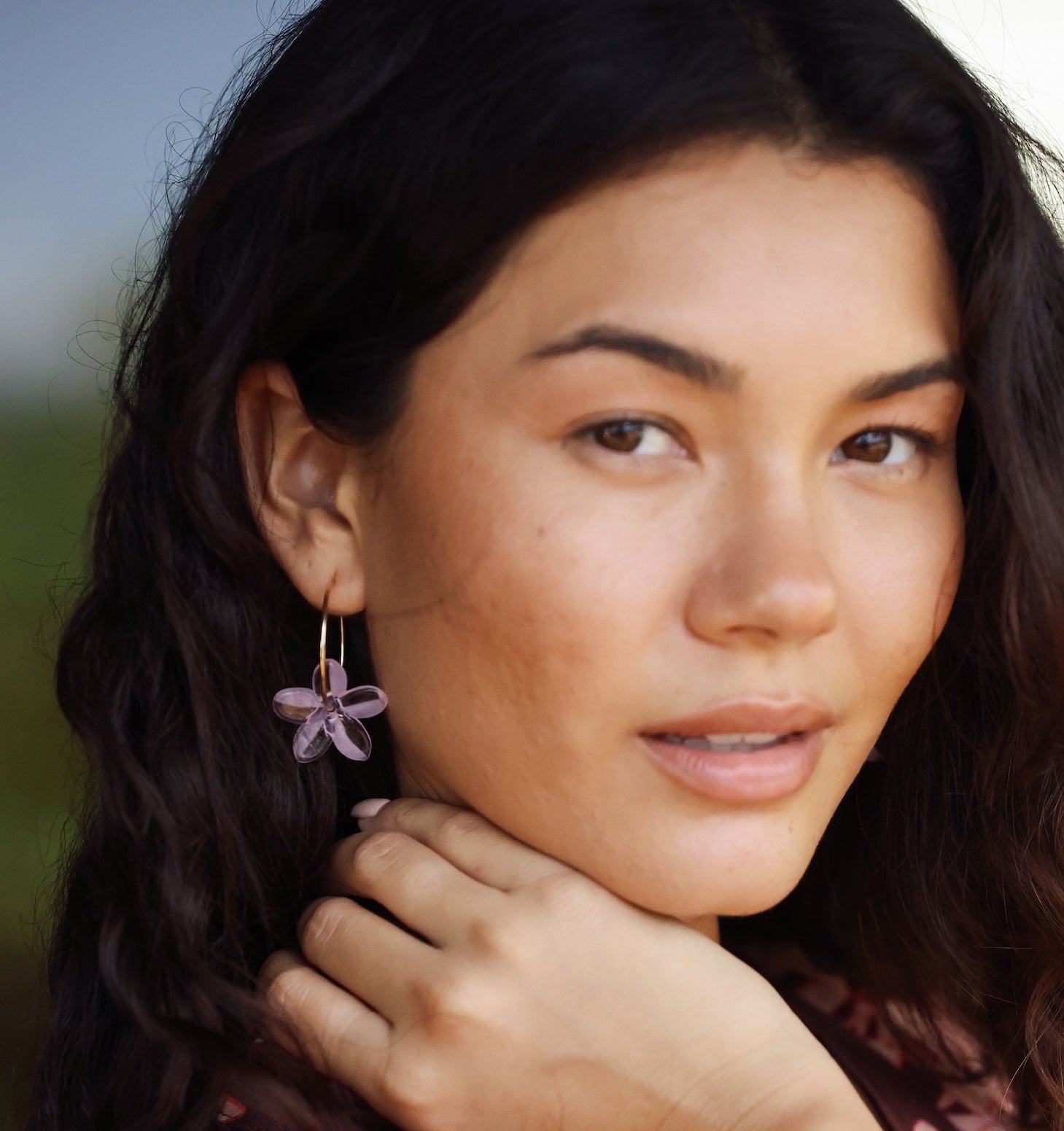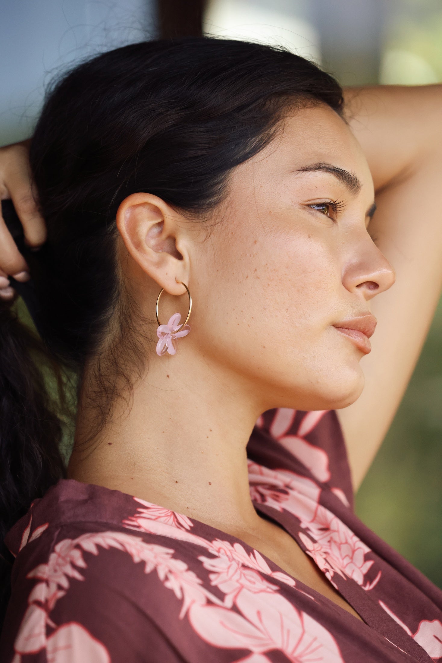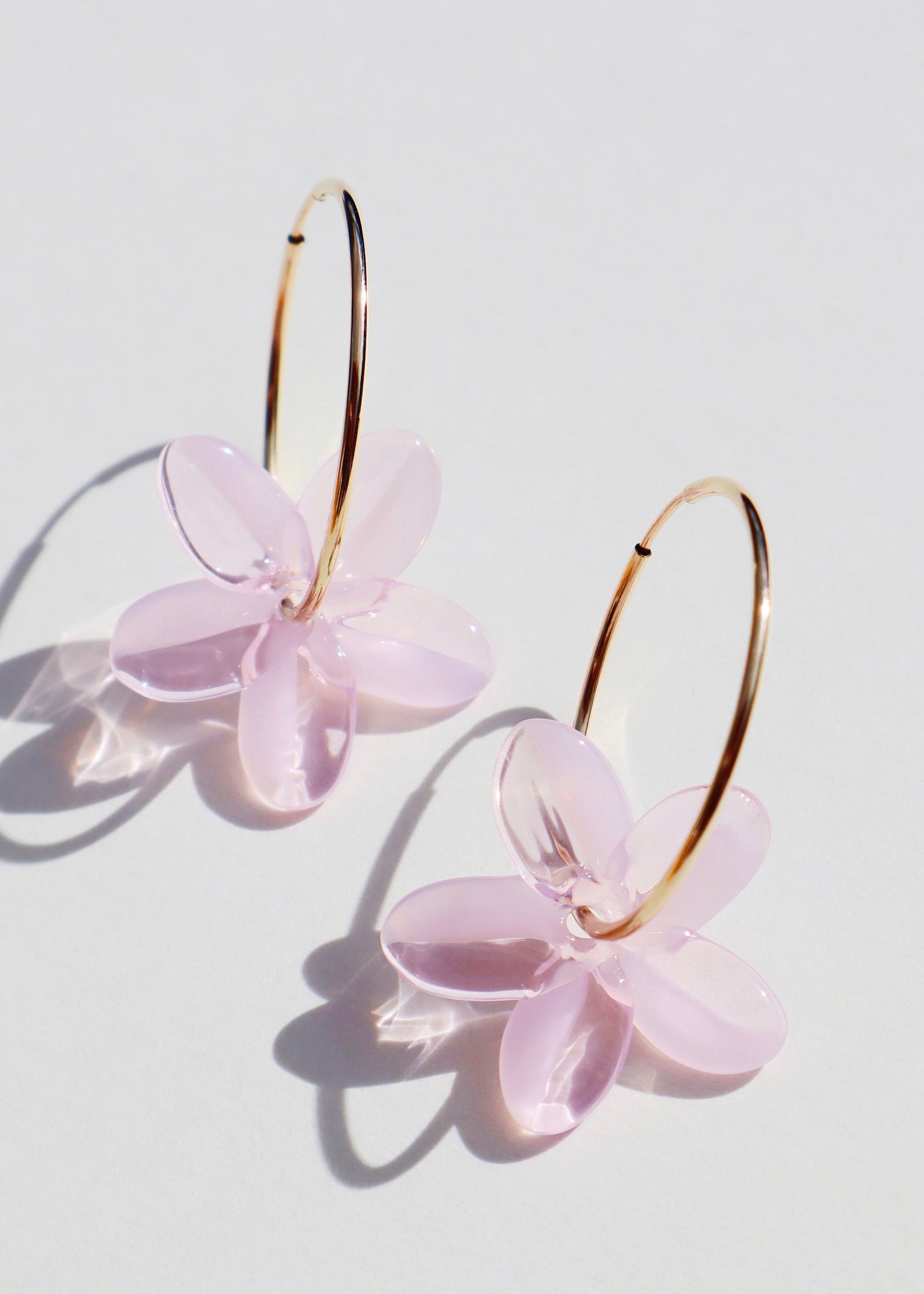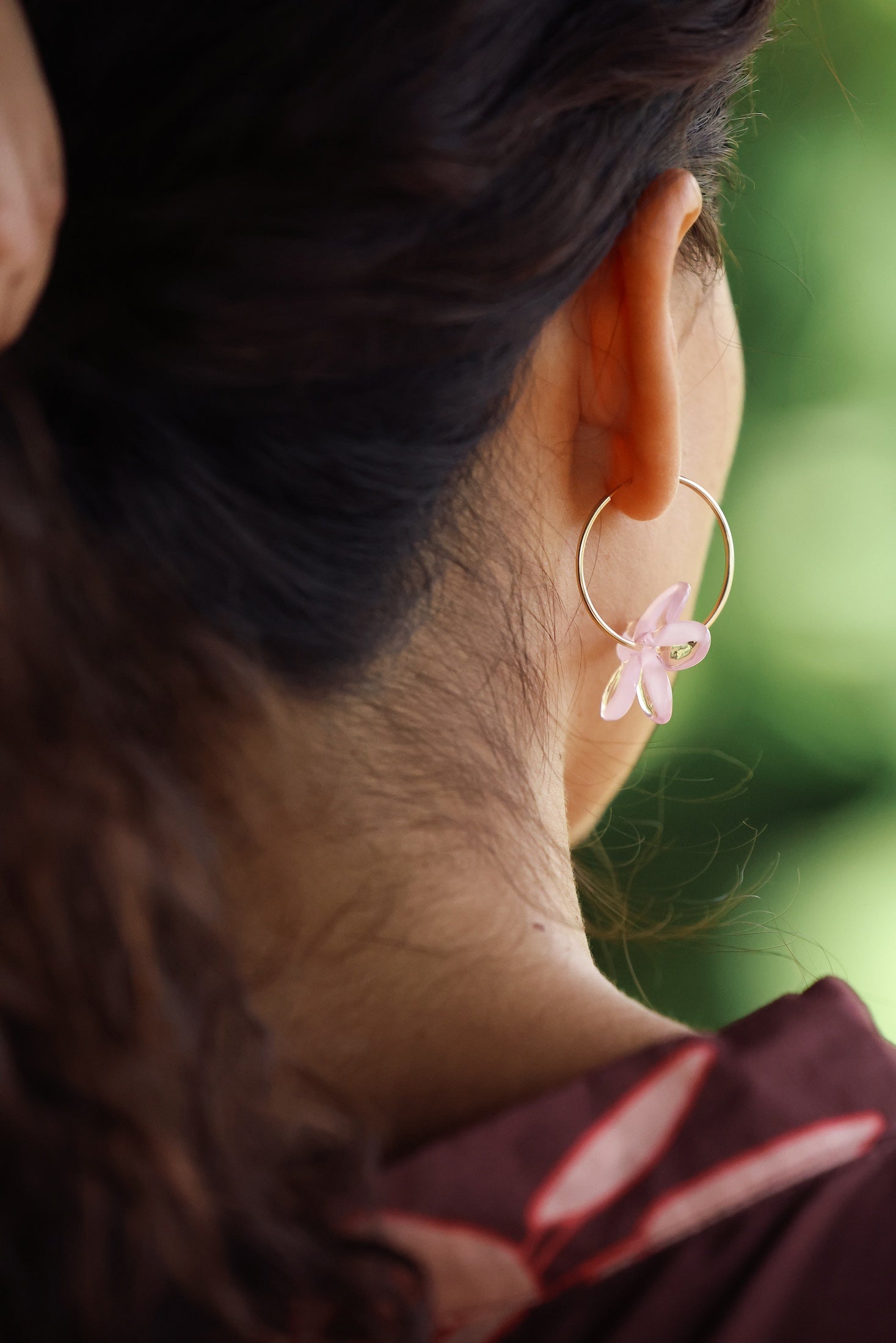 Yireh + Arlie Glass Pink Pua Melia Hoop Earrings